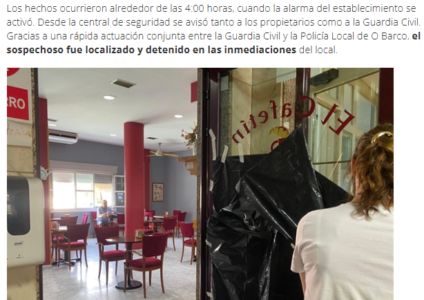 Así como resolver con resultado de detención inmediata por parte de las Fuerzas y Cuerpos de Seguridad en intentos frustrados de robo.